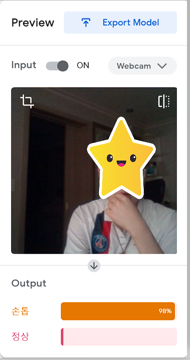 - 이 모델에 대한 결과는 위 사진에 Export Model을 클릭하여 다운로드 받을 수 있고, 어떠한 앱을 만들거나 새로운 솔루션을 만들어 낼 때 유용하게 사용할 수 있을 것이라고 생각한다.